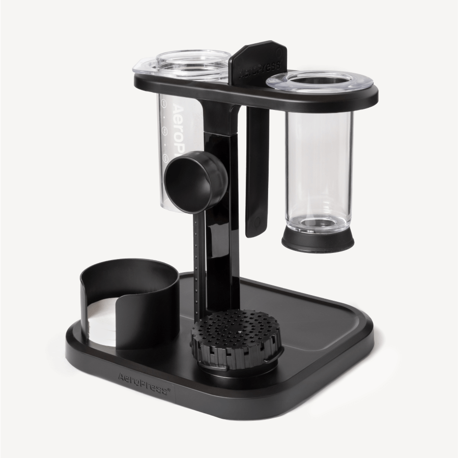 With the AeroPress Organizer Stand. you can keep your AeroPress coffee maker and accessories together and at your fingertips! This compact organizer stores the AeroPress Original. Clear. or XL coffee maker along with accessories to declutter your cabinets and keep countertops neat. Bring some style to your kitchen and enjoy the perfect storage solution with the new AeroPress Organizer Stand!